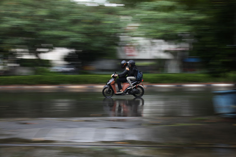 Waiting for the Hujan (Rain) to stop Written by welovejakarta on December 15, 2010 Near Radio Dalam, watching traffic in the rain.. You have to love an umbrella on a bike... Share on Facebook